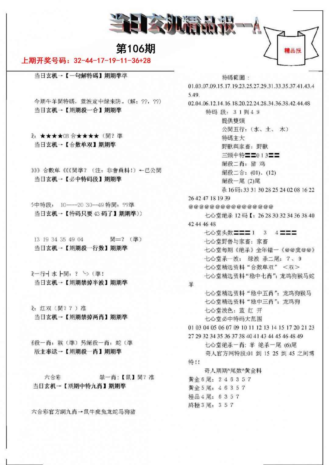 当日玄机精品报A